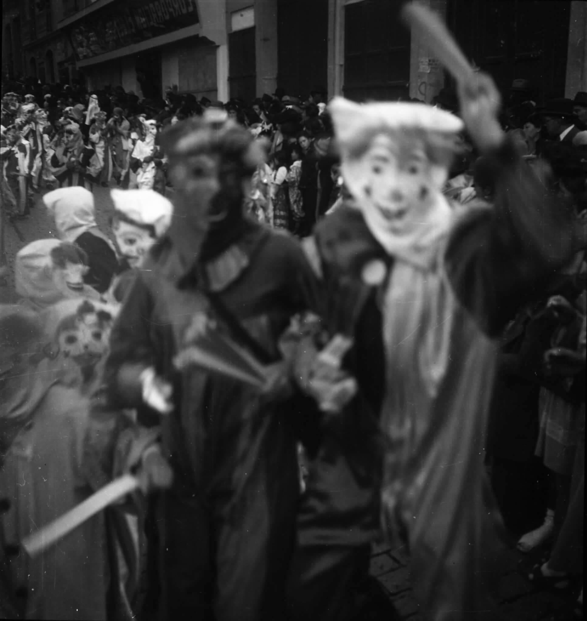 Mit dieser Aufnahme taucht Yelincic direkt ins Geschehen des Karnevalsumzugs ein. Die Aufnahme ist im Vordergrund unscharf, was die Dynamik und die Magie des Moments noch erhöht.